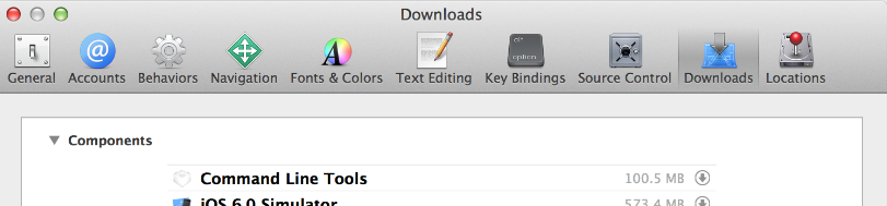 Xcode also includes a new âDownloadsâ preference pane to install optional components such as command line tools. To open the pane click the âXcodeâ button in the top left of the screen near the Apple logo, then you click âPreferencesâ, then click âDownloadsâ. Install the Command line tools from the Download pane.